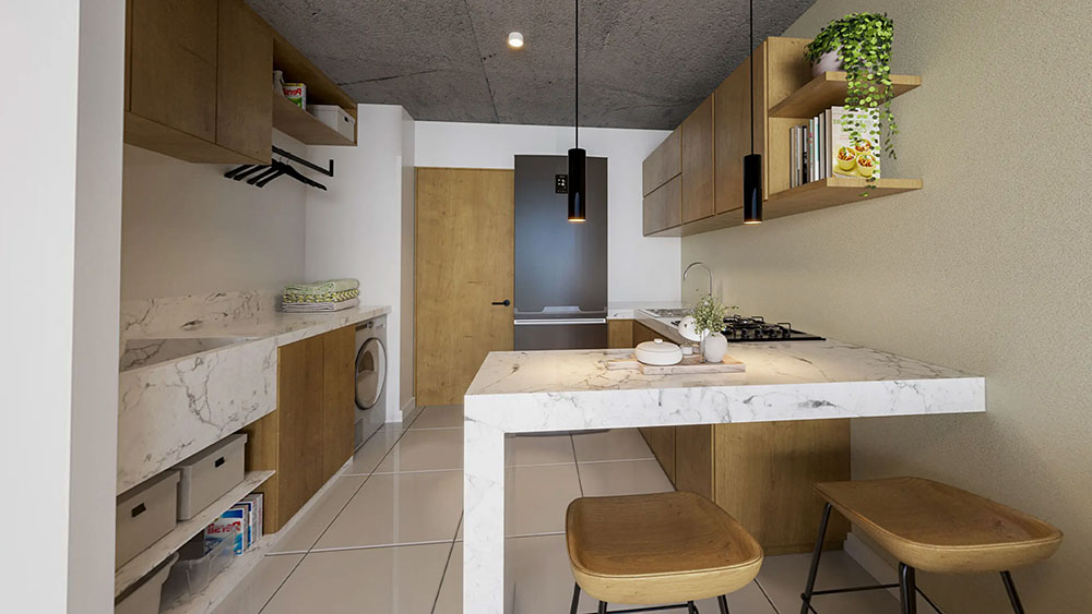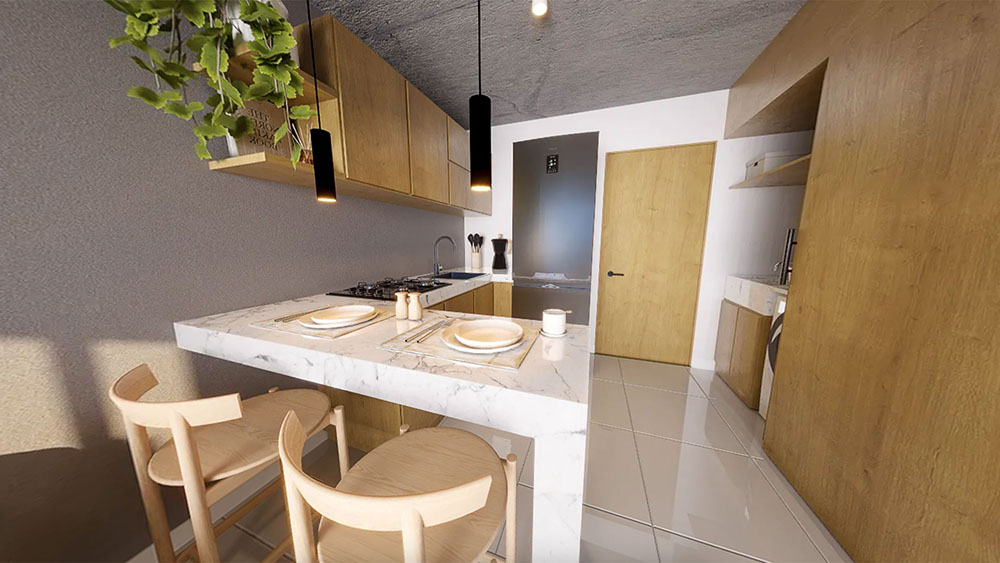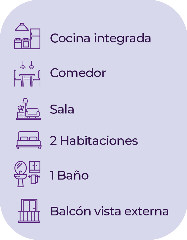 Nuestros apartamentos ofrecen un equilibrio perfecto entre diseño contemporáneo y funcionalidad, excelente distribución que se adapta a las diferentes necesidades de los jóvenes que desean tener su propio hogar. Además, nuestras instalaciones están diseñadas para facilitar el día a día, desde espacios multifuncionales hasta áreas comunes diseñadas para la interacción social y recreacional.
