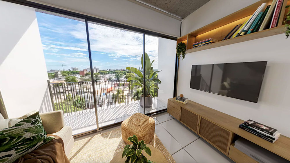 - Use el cursor para realizar un tour virtual en el apartamento con acabados